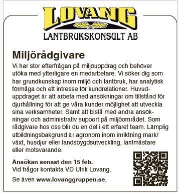 Lovang Lantbrukskonsult AB bildades 1981 och har kontor i Vikingstad, Östergötland. Vi är främst inriktade på rådgivning inom odling, produktionsekonomi och miljö. På konsultföretaget finns idag 13 rådgivare anställda. Våra kontraktskunder finns i Östergötland med närliggande län. Tillfälliga uppdrag utförs över hela landet.